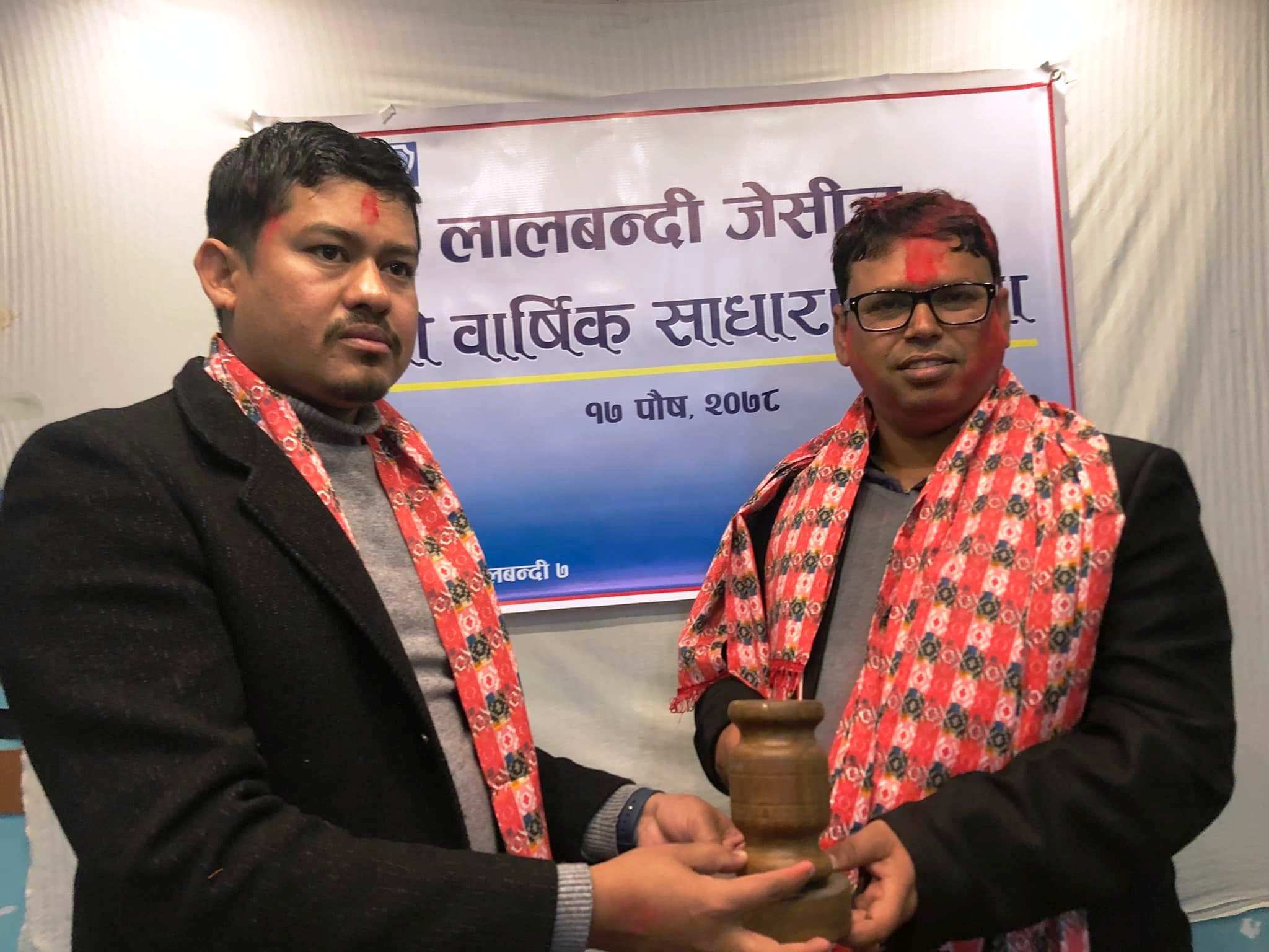 त्यस्तै जेसिज लालबन्दी शाखाको कार्यकारीणी उपाध्यक्षमा कोमल प्रसाद गौतम र राजकुमार सिह, उपाध्यक्षहरुमा कुल प्रसाद गौतम, उपेन्द्र महतो, सुमन थापा र सुनिता खरेल थपलिया निर्वाचित भएका शाखाका जेसिज बर्ष २०२१ का अध्यक्ष श्याम खड्काले जानकारि दिनुभयो ।