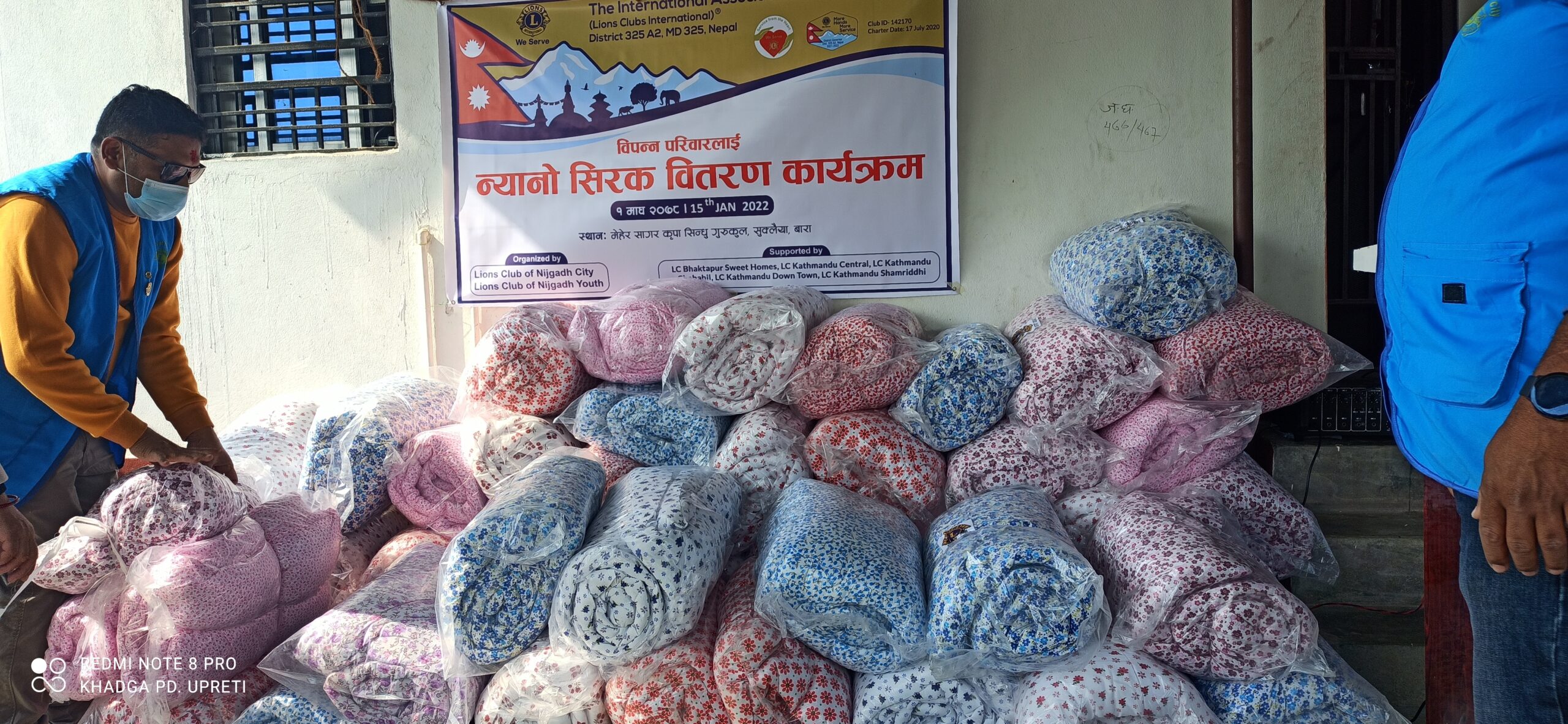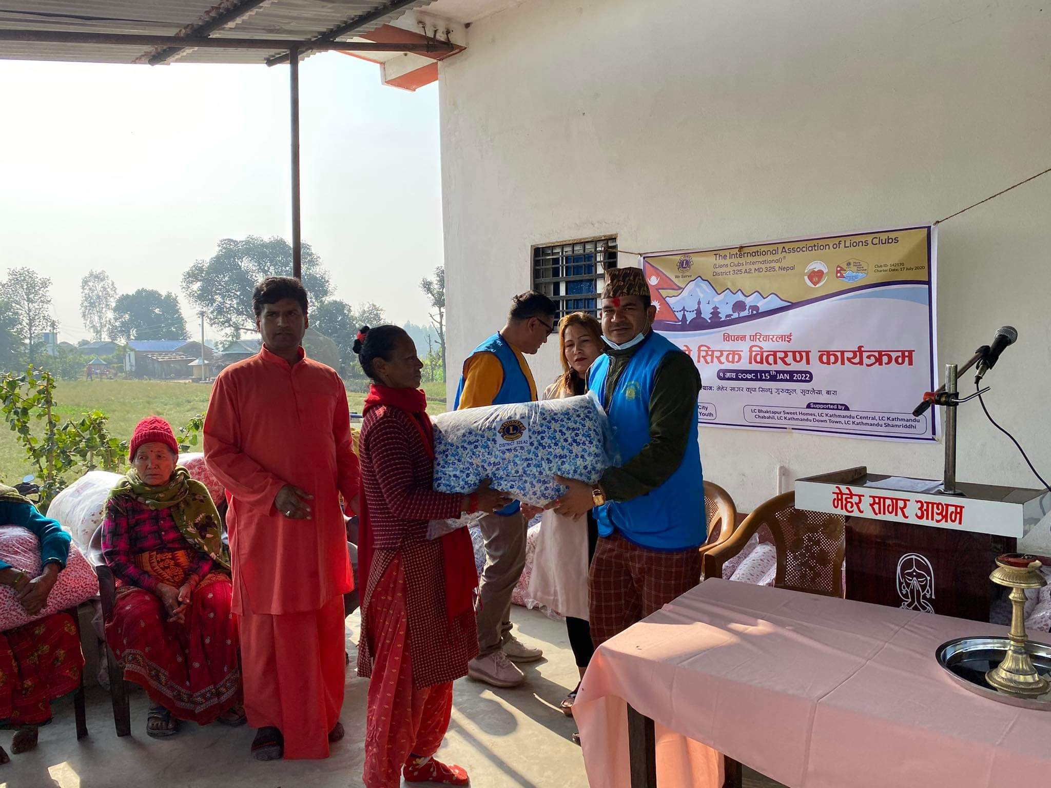 लायन्स क्लब अफ निजगढ सिटी र लायन्स क्लब अफ निजगढ युथको आयोजनामा बारा जीतपुर सिमरा उपमहानगरपालिका वडा नं १५ सुक्लैया स्थित मेहर सागर कृपा सिन्धु गुरुकुलको प्राङ्गणमा ५४ विपन्न परिवारलाई सिरग वितरण गरिएको छ ।