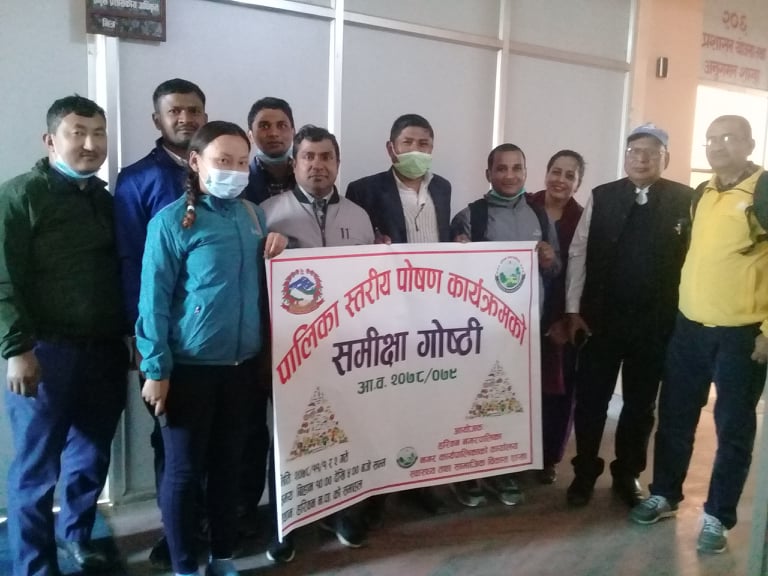 पोषण कार्यक्रम अन्तर्गत नगरभित्रका २ वर्षमुनिका बच्चाहरुको वृद्धिको अवस्थाको बारेमा भएका अनुगमन, कुपोषण र रक्तअल्पता भएका बच्चाहरुको खोज पड्ताल र उपचारको अवस्था, जुकाको औषधी र १८० ट्याव आईरन चक्की खाएका गर्भवती महिला, भिटामिन ए र जुकाको औषधी खाएका ५ वर्षमुनिका बालबालिका, भिटामिन ए र ४५ ट्याव आइरन चक्की खाएका सुत्केरी महिलाहरु र बालभिटा खाएका ६ महिनादेखि २३ महिना सम्मका शिशुहरुको अवस्थाको बारेमा समीक्षा गरिएको थियो ।