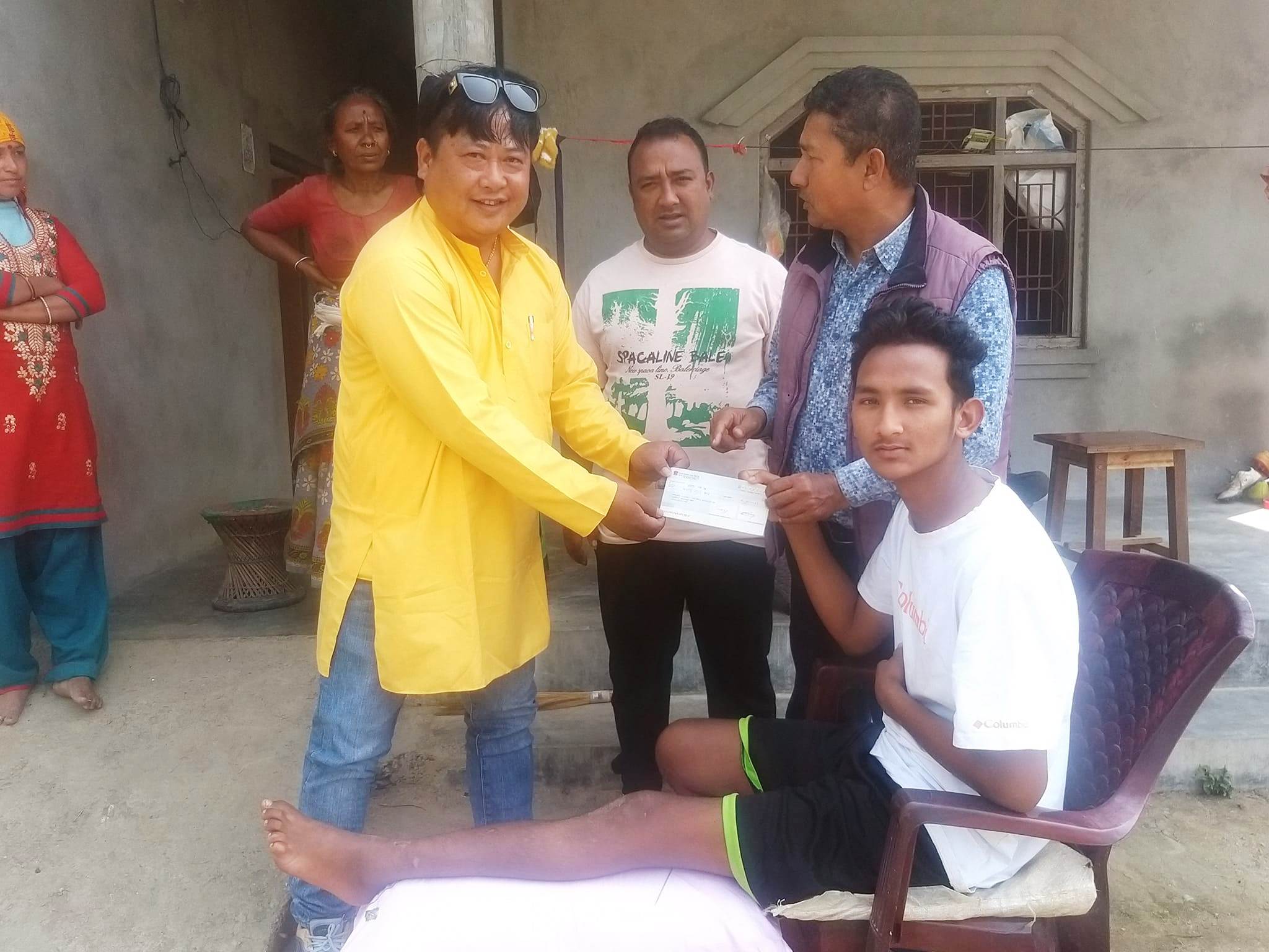 केहि समय अगाडि लालबन्दी ६ मा भएको जिल्लास्तरिय ए डिभिजन फुटवल प्रतियोगीतामा खेलका क्रममा घाईते भएका खेलाडि बिश्वकर्मालाई अखिल नेपाल फुटवल संघका अध्यक्ष बिष्णु सुस्लिङले उक्त रकमको चेक हस्तान्तरण गर्नुभएको हो ।