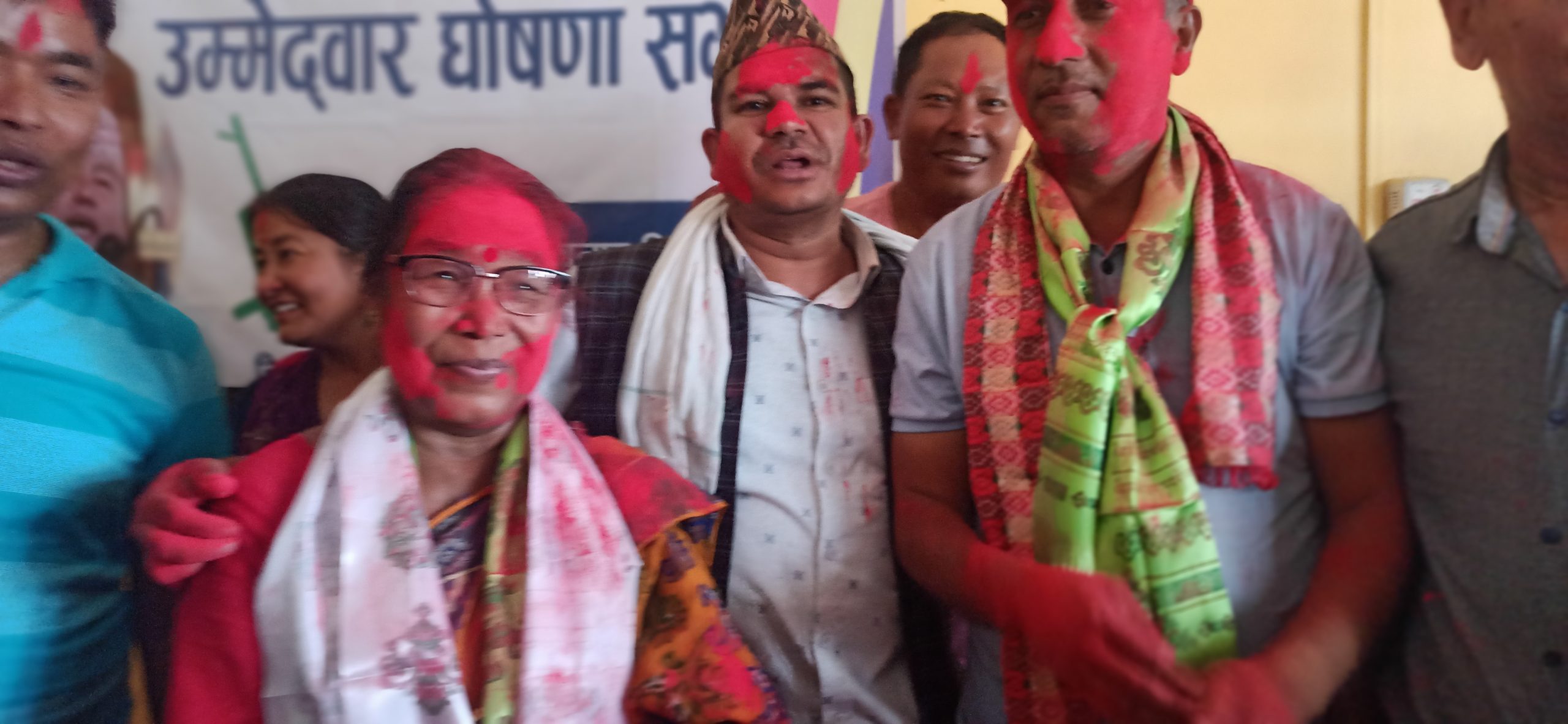 त्यसैगरी गरी वडा नम्बर १ बाट प्रकास केसी, २ मा भक्त दर्लामी, ३ सन्तोष कुमार राउत, ४ शेषा सापकोटा, ५ शिव प्रधान, ६ काजीबहादुर अधिकारी, ७ बमबहादुर थापा, ८ मा नरनाथ गौतम, ९ मा पद्मबहादुर श्रेष्ठ, १० मा गोपीलाल जिम्बा, ११ मा तिर्थबहादुर श्रेष्ठ (शंकर), १२ मा मानबादुर गोले, १३ मा ठुलीमाया घलानलाई उम्मेदवार बनाउने निर्णय भएको नगर अध्यक्ष खडकप्रसाद उप्रेतीले बताउनुभयो । पार्टीले वडा नम्बर ९ को दलित महिला सदस्यमा भावना सुनारलाई दलित महिला सदस्यमा उम्मेदवार बनाउने भएको छ । टिकट आइसकेको र कागजपत्र तयार पारेर आईतबार उम्मेदवारी दर्ताको कागजपत्र तयार पारिने र मनोनयन पत्र दर्ता गरिने उहाँले बताउनुभयो ।