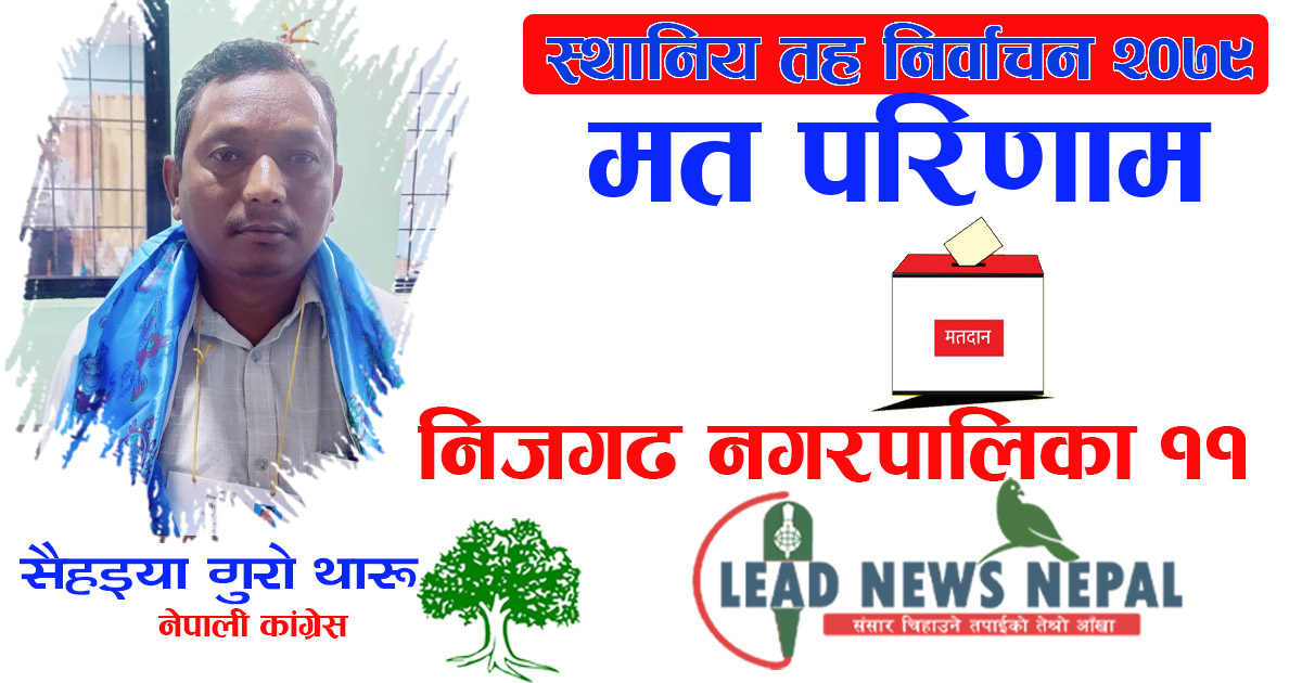निजगढ नगरपालिका–११ को वडा अध्यक्षमा गठबन्धनबाट नेपाली कांग्रेसका उम्मेदवार सैहइया गुरो थारु विजयी भएका छन् । उनी ६ सय ९० मतसहित विजयी भएका हुन् । उनका निकटतम् प्रतिद्धन्द्धी नेकपा एमालेका उम्मेदवार बाबुराम स्याङ्गतानले ६ सय ८२ मत प्राप्त गरेका छन् । स्याङ्गतानलाई ८ मतको झिनोफरकले पराजित गर्दै थारु वडा अध्यक्षमा निर्वाचित भएका हुन ।