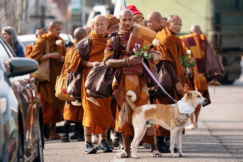 भिक्षु पन्नाकरको नेतृत्वमा रहेको १९ जनाको टोलीले ३ हजार ७०० किलोमिटरको यात्रा पूरा गरेको छ । थेरवाद बौद्ध गुम्बाका विश्वभरका १९ जना भिक्षु रहेको टोलीमा आलोका नामको कुकुर पनि थियो ।