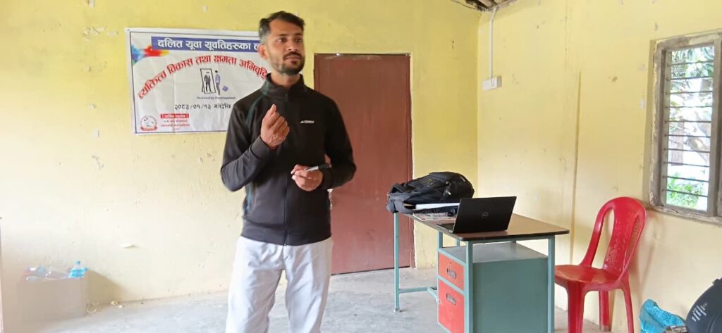 साविक वडा नम्बर ८ स्थित धर्मशाला/सार्वजनिक भवनमा भएको तालिममा वडा नम्बर १ का ३० जना दलित समुदायका युवा युवतिको सहभागीता रहेको थियो । पत्रकार श्रवण थापा प्रशिक्षक रहेको तालिममा प्रशिक्षार्थीहरुलाई अरुको सामुन्ने कसरी प्रस्तुत हुने, प्रभावकारी सञ्चारको भुमिका, आवश्यकता, आफुलाई परिस्कृत गर्नु किन जरुरि रहेको छ ?, अहिलेको युगमा सञ्चार सिपको महत्व लगाएतको विषयमा प्रशिक्षण प्रदान गरिएको आयोजकले जनाएको छ ।