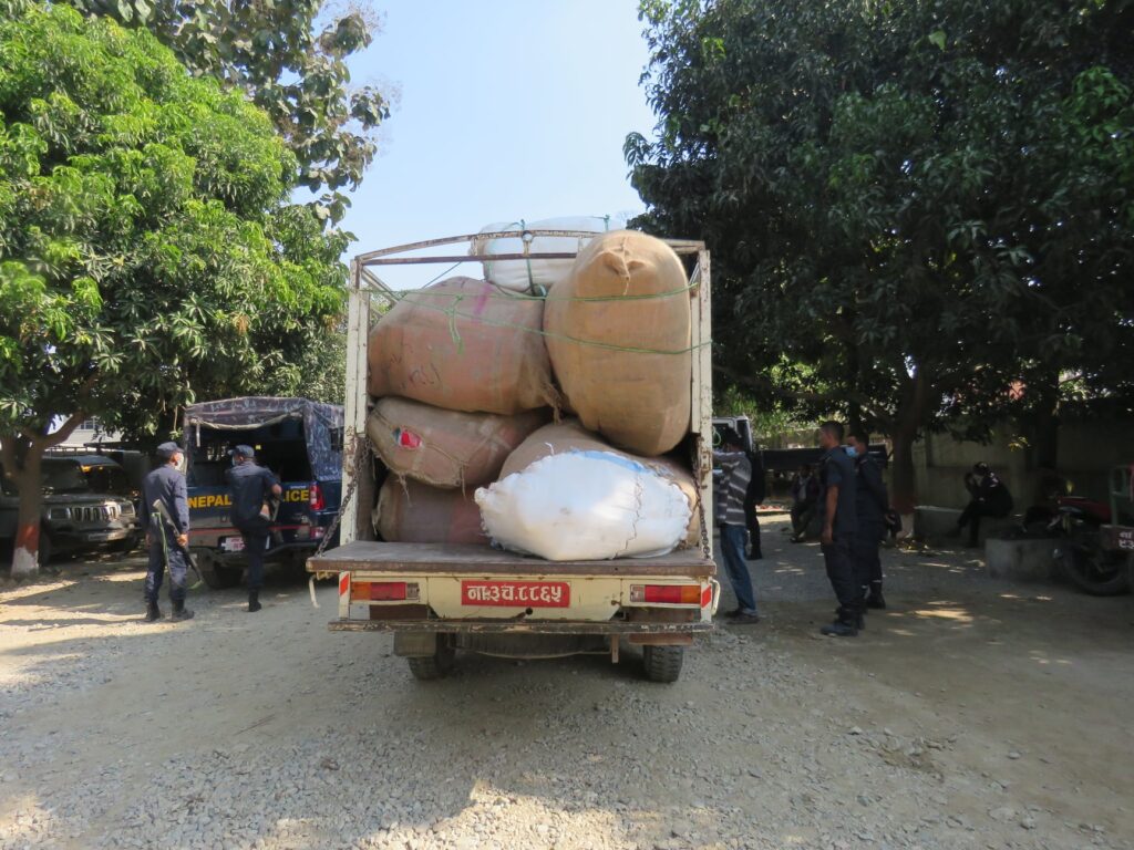 रौतहट प्रहरिले यहि मंसिर २ गते मंगलवार पक्राउ गरेको ११ पोका कपडालाई बुधवार राजस्व अनुुसन्धान कार्यालय पथलैया बारा पठाएको छ ।