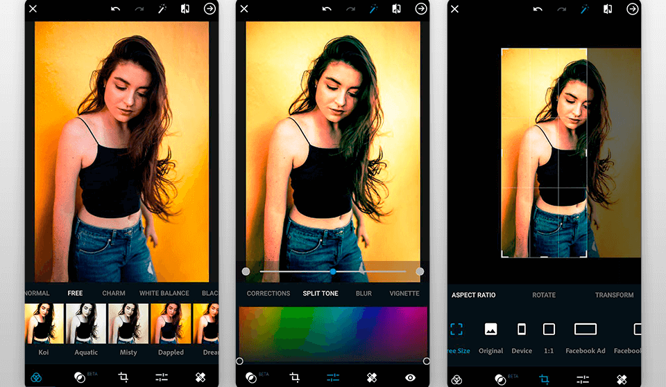 प्रोफेसनल फोटोग्राफरहरुका लागि स्ट्याण्डर्ड एडिटिङ टूल मानिने एडोबको लाइट रुम आईओएस र एन्ड्रोइड दुवैमा उपलब्ध छन् । यसको निःशूल्क भर्सनमा सीमित फिचर मात्रै पाइन्छ ।