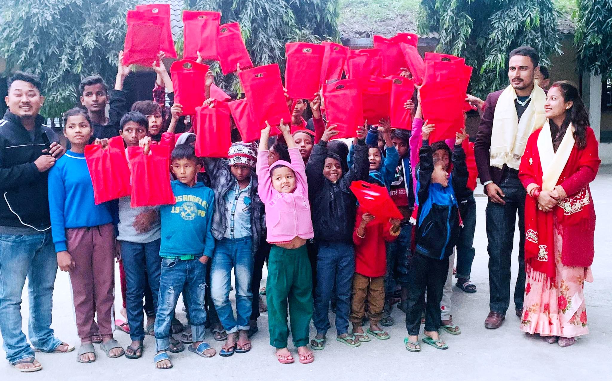 भर्खरै बैवाहिक बन्धनमा बाँधिएका लालबन्दीका बख्रेल दम्पतीले गरे ६५ बालबालीकालाई शैक्षिक सामाग्री बितरण