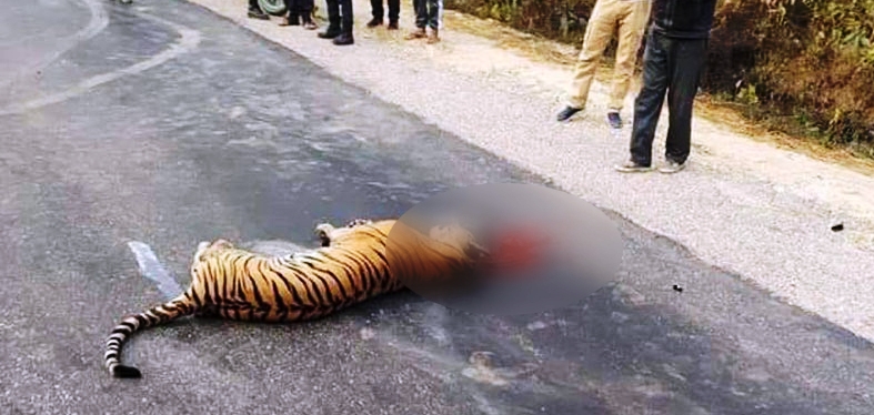 बाघलाई ठक्कर दिएर मार्ने कार चालकविरुद्ध वन्यजन्तु संरक्षण ऐन अन्तर्गत मुद्दा