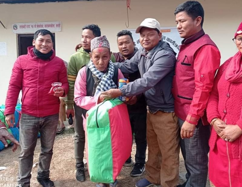 त्यसैगरी शनिबार वडाको सत्रकट्ठा र डाईनीखोलाका ५० जना जेष्ठ नागरिकलाई सम्मान गरिएको वडा सचिव रेग्मिले जानकारी दिनुभयो । वडा कार्यालयले कठ्याङ्ग्रीँदो जाडोबाट राहत पुगोस् भन्ने हेतुले राहतका सामग्री बितरण गरेको हो ।