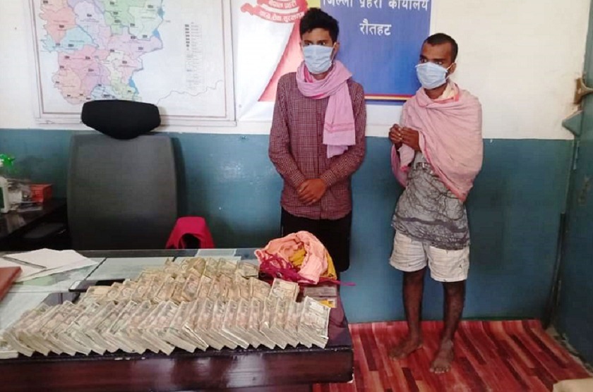रकमसहित भारत मोतिहारी घोडासहन बस्ने अन्दाजी वर्ष २२ का बन्टिकुमार कलवार र सोही ठाउँमा बस्ने वर्ष २० का सुरज कलवारलाई प्रहरीले पक्राउ गरेको जिल्ला प्रहरी कार्यालय रौतहटका प्रहरी उपरीक्षक सिद्दी बिक्रम शाहले जानकारी दिए ।