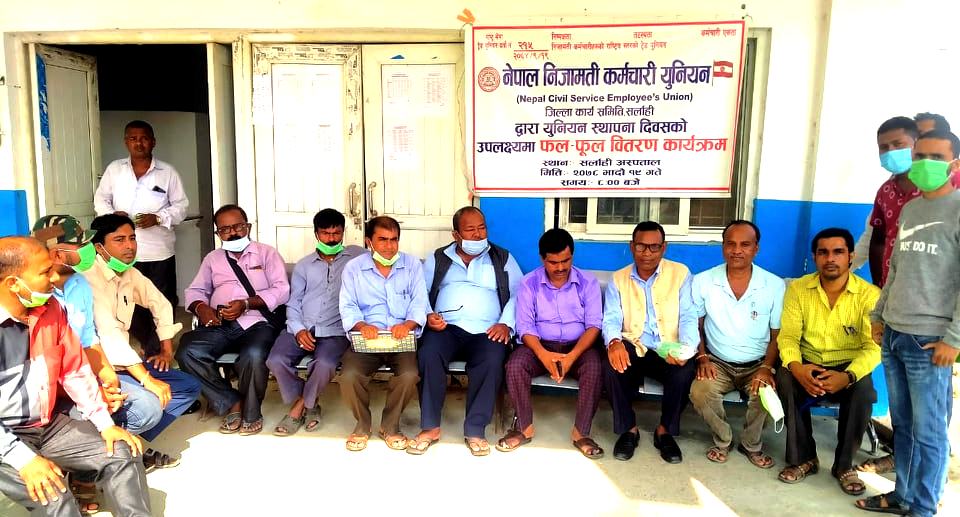 नेपाल निजामती कर्मचारी युनियनले प्रत्येक वर्ष नौलो कार्य गरेर स्थापना दिवस मनाउने गरेकोले यस वर्ष पनि आफनो ३१ औँ स्थापना दिवसको अवसरमा सर्लाही अस्पताल मलंगवामा भर्ना भएका सम्पूर्ण विरामीहरूलाई फलफुल तथा मास्क वितरण गरि स्थापना दिवस मनाएको निजामती कर्मचारी युनियनको सर्लाही जिल्ला कार्य समिति सदस्य शैलेन्द्र कुमार महतोले बताए ।