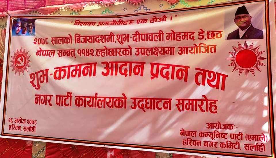 सर्लाहीको हरिवन नगरपालीका ११ स्थित बजारमा एमालेको प्रदेश कमिटीका सदस्य राजकुमार उप्रेतीको अध्यक्षता तथा पार्टीका प्रदेश २ सह–इन्चार्ज अच्यूत मैनालीको प्रमुख आतिथ्यतामा पार्टी कार्यालयको उद्घाटन गरिएको हो ।