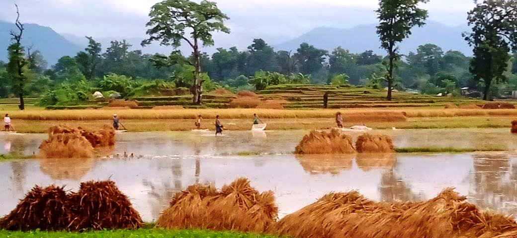 अविरल वर्षाले पाकेको धानबाली भिज्यो, किसान चिन्तित