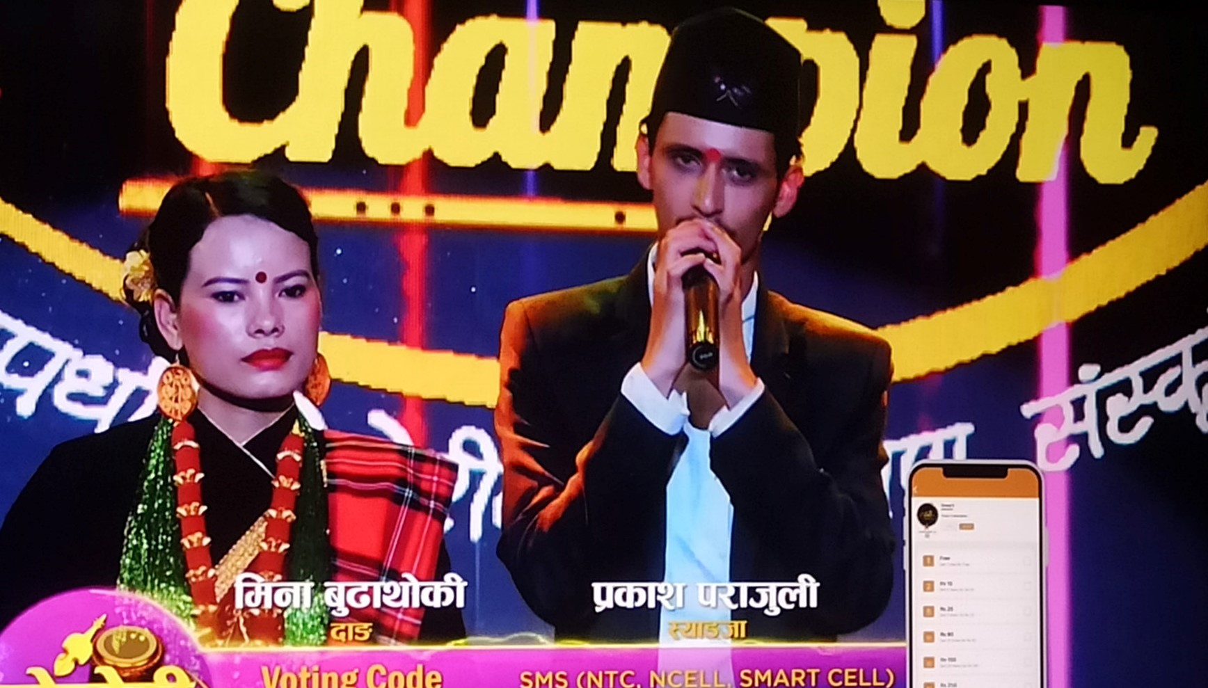 मौलिक रियालिटी शो ‘दोहोरी च्याम्पियन’को उपाधि प्रकाश पराजुली र मीना बुढाथोकीले जितेका छन् ।